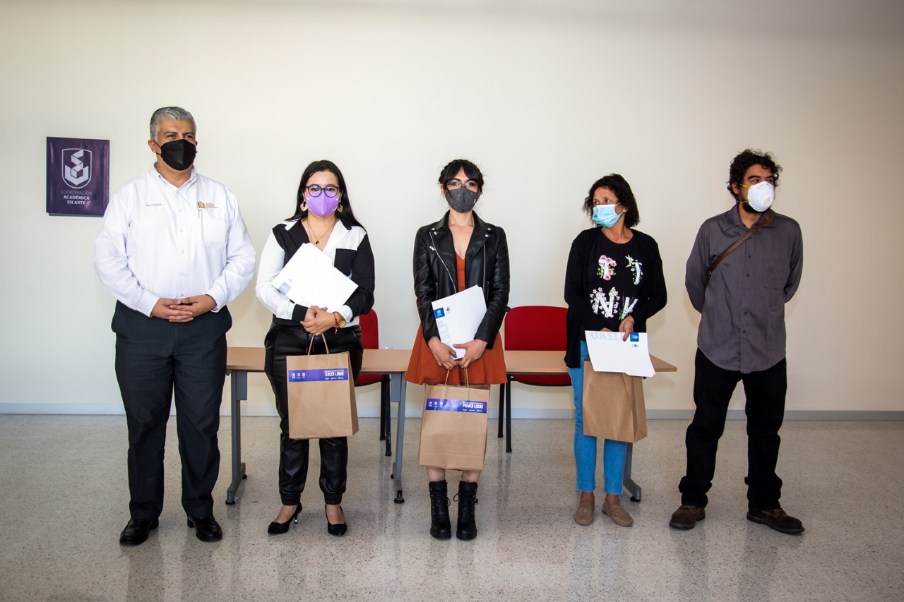 Estuvieron presentes en la entrega de premios, el maestro Oscar Montero Torres, director de la Coordinación Académica en Arte y el licenciado Jorge Delgado Delgadillo, en representación de la Defensoría de los Derechos Universitarios.