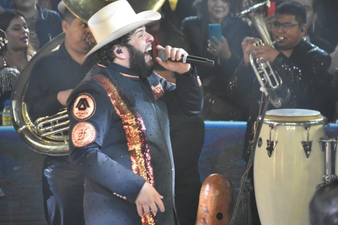 A ritmo de cumbias, norteñas, seguidas por canciones rancheras, de amor y desamor, con los constantes fuegos pirotécnicos le dieron un toque llamativo a su presentación.