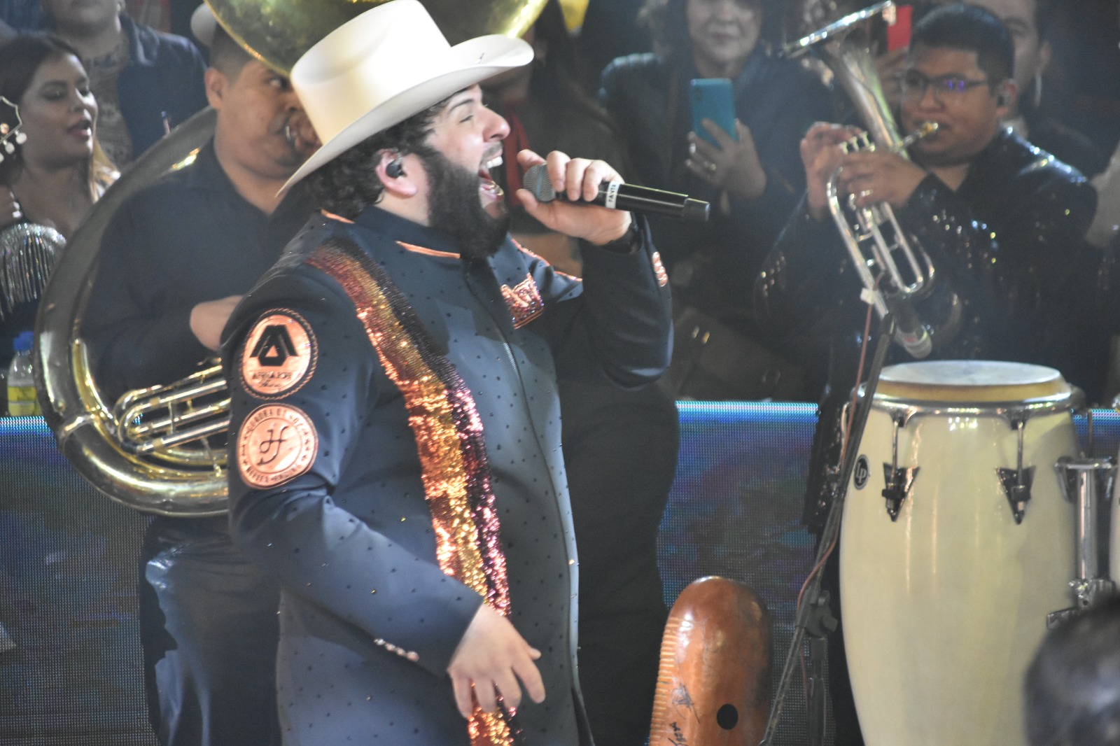 Después de ellos en el escenario apareció la estrella de la noche El Fantasma, y al aparecer los fuegos pirotécnicos y la banda puso al público eufórico cantando y gritando y brindando con cada una de sus interpretaciones y más aún cuando apareció el Mariachi México en la Piel hizo que muchos se pusieran «con la piel chinita» cuando comenzó a cantar «El Rey», «Me cansé de llorar», «Acá entre nos», «La vida no vale nada» entre otros éxitos internacionales.