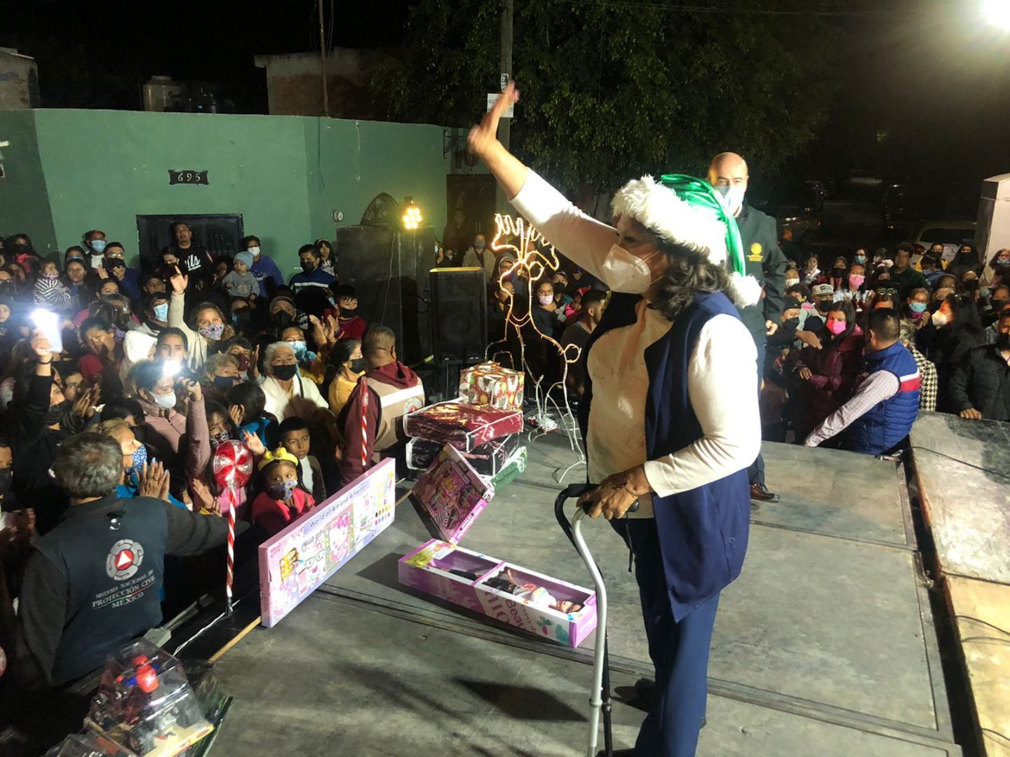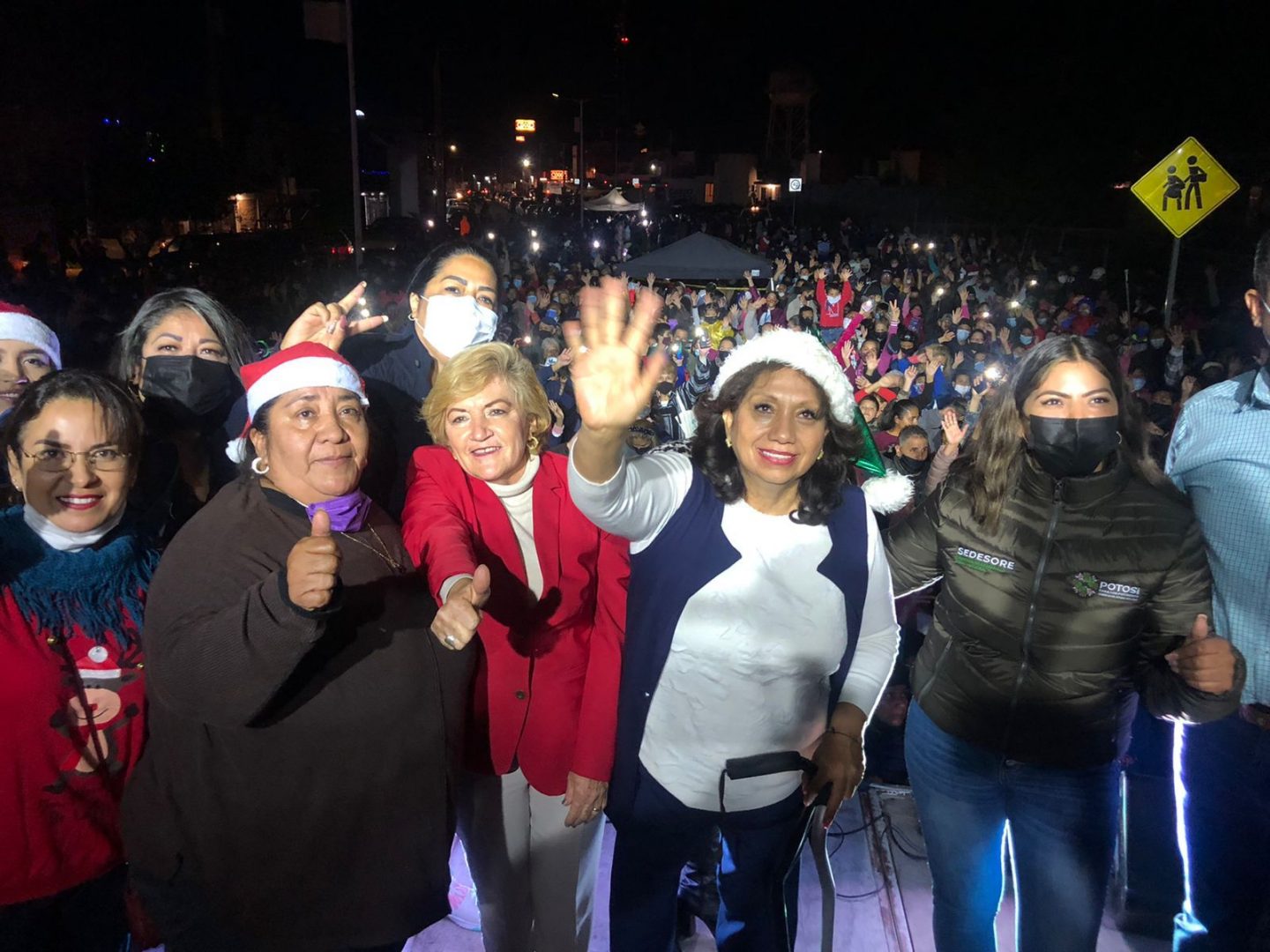 De forma posterior la jefa de gobierno soledense se trasladó a la colonia Primero de Mayo y San Antonio en donde la música, hizo vibrar a los asistentes que agradecieron a la alcaldesa y al diputado federal el apoyo que hasta el momento han recibido; durante su discurso Leonor Noyola deseo a sus gobernados unas felices fiestas y se dijo satisfecha de mantener el acercamiento con la población.
