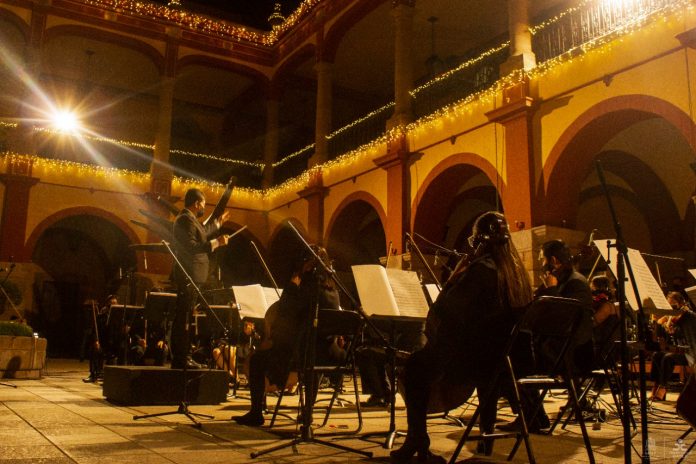 El evento continuó con la presentación de la Orquesta Sinfónica Universitaria dirigida por el Mtro. Alfredo Ibarra. El programa inició con la “Suite de El Cascanueces” de Piotr Illich Tchaikovsky; la noche continuó con entrañables temas contemporáneos como: “Cinema Paradiso” de Ennio Morricone, “Summer” de Joe Hisaishi y “Carol of the bells”, entre otros.
