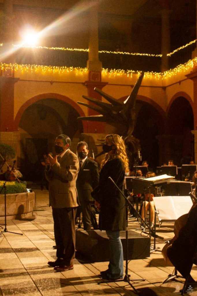 Posteriormente el Rector Dr. Alejandro Zermeño Guerra, acompañado por la Lic. Cynthia Valle Meade, jefa de la División de Difusión Cultural, dirigió un mensaje para los asistentes en el que destacó que es muy importante la fraternidad y la unión como familia universitaria y potosina en tiempos difíciles, “sobre todo en época de fiestas navideñas que nos unen y que nos invitan a la reflexión para enfrentar de una mejor manera los retos del año próximo.”