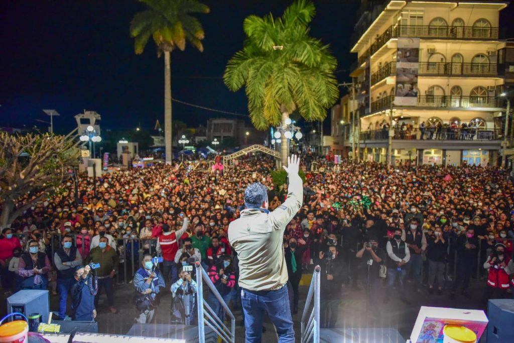 Ante una imponente concentración de asistentes en la Plaza Principal de Rioverde, el Mandatario habló del nuevo San Luis que se está construyendo, dotando a los habitantes de novedosos esquemas de apoyo que mejore su economía y condición social, destacando que el 2022 será el año de la consolidación de muchos proyectos de gran impacto para la gente de las cuatro regiones de la Entidad.