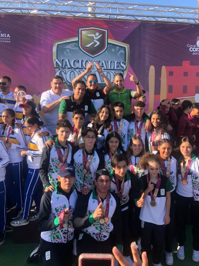 Al respecto, detalló los galardones obtenidos: Erick Jaziel Chávez Derreza logró plata en 400 metros combinados; Danna Pérez Montalvo, bronce en 400 metros combinados; el equipo potosino en relevos 4X200 metros, integrado por Karla Edith de la Rosa, Liseska Gallegos Ramírez, Julianne Salvador Prues y Danna Pérez, se colgó medalla de plata; mientras que el de relevos varonil en prueba de 4X200 metros obtuvo bronce, conformado por Manuel Chávez Villalpando, Guillermo Cerda, Juan Pablo Llamas Bustamante y Juan Emiliano Tristán Zarate.