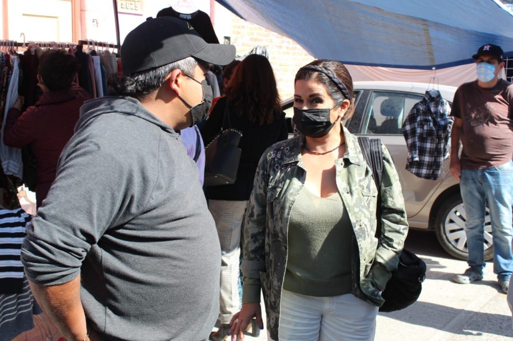 La directora de Comercio Municipal, Beatriz Eugenia Benavente Rodríguez, recorrió este martes la ruta 6 y 7 de los tianguis ubicados en la colonia Popular y Constituyentes, para vigilar el cumplimiento de las medidas contra el covid-19 en esos espacios.