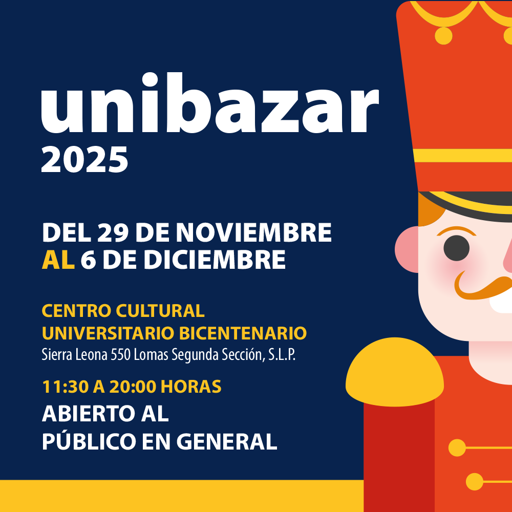 La Universidad Autónoma de San Luis Potosí (UASLP) se alista para la realización del tradicional Unibazar 2025, que llega a su 35 edición. El evento, organizado anualmente por el Comité de Damas Voluntarias, se llevará a cabo del 29 de noviembre al 6 de diciembre en el Centro Cultural Universitario Bicentenario (CC200), ubicado en Sierra Leona 550, Lomas Tercera Sección. La entrada será libre en un horario de 11:30 a 20:00 horas, con amplio estacionamiento.