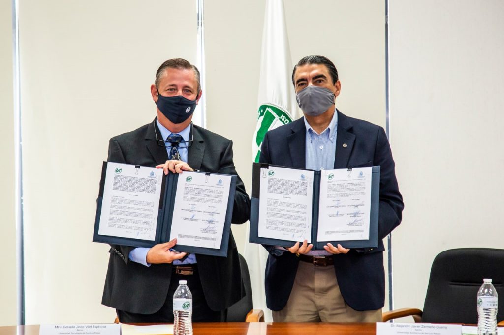 Esta alianza de colaboración fue firmada por el rector de la Universidad Autónoma de San Luis Potosí, el doctor Alejandro Javier Zermeño Guerra y por el rector de la Universidad Tecnológica de San Luis Potosí, el maestro Gerardo Javier Vilet Espinosa, quienes coincidieron en señalar que este tipo de colaboraciones abonan en la impartición de educación de ambas instituciones.
