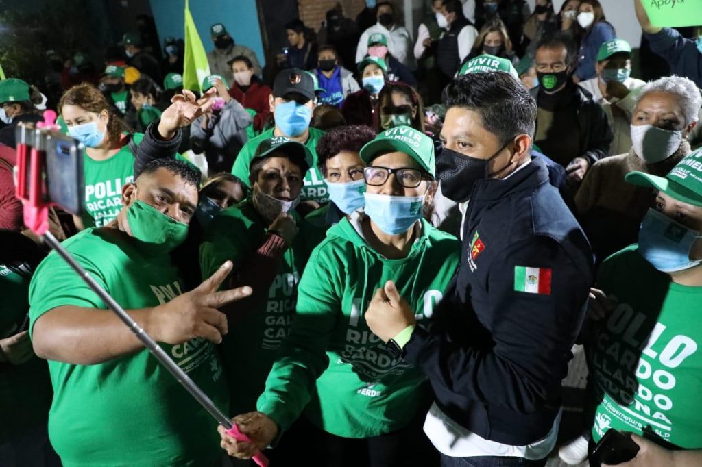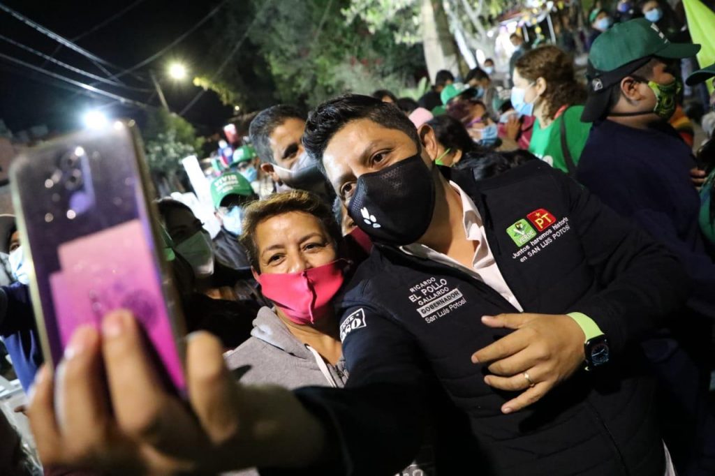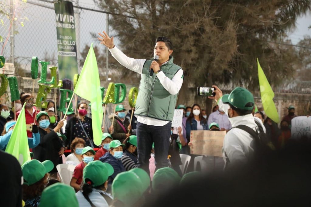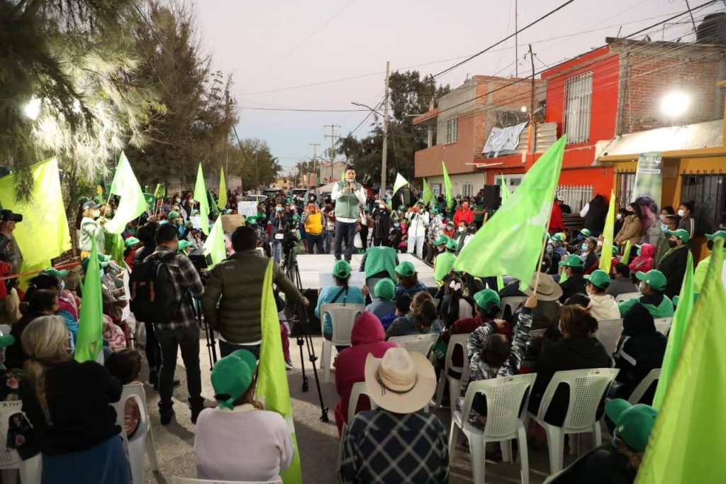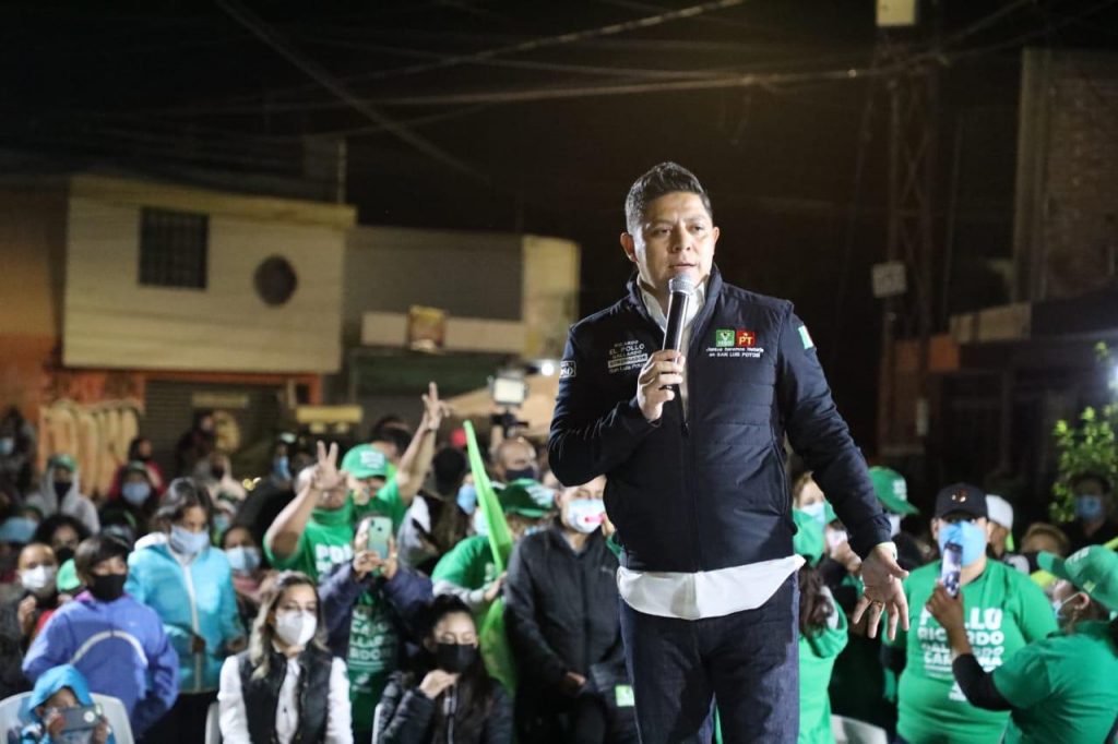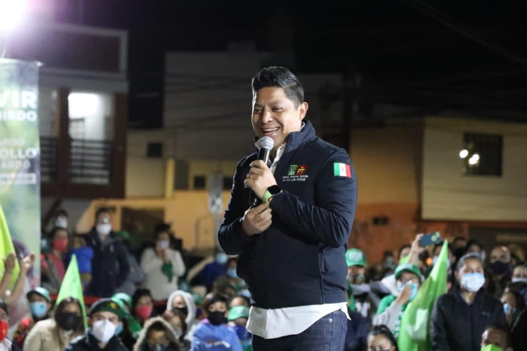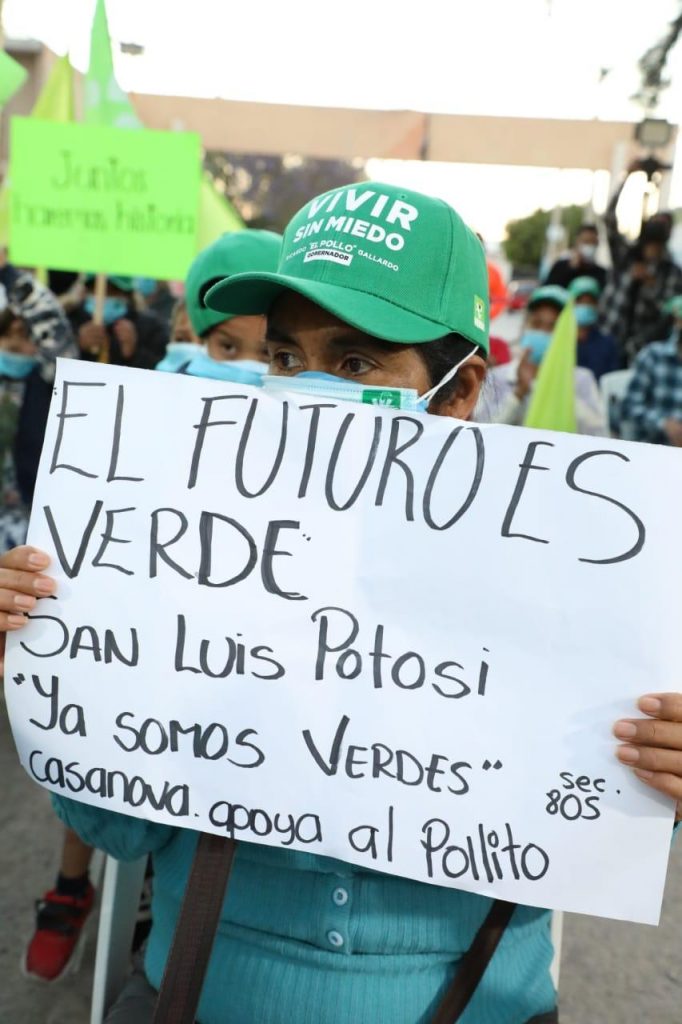 Entre las banderas Rojiverdes del Partido Verde Ecologista de México (PVEM) y del Partido del Trabajo (PT) y con cientos de carteles con muestras de afecto, “El Pollo” Gallardo dijo que erradicará el burocratismo de los institutos antes citados, así como de la secretaría de Cultura, para que de esta manera amplíen sus servicios a las y los jóvenes de todo el Estado, pues actualmente sus servicios son excluyentes y limitados.