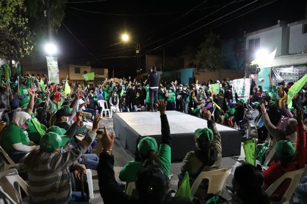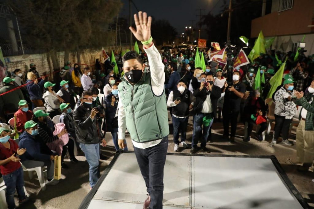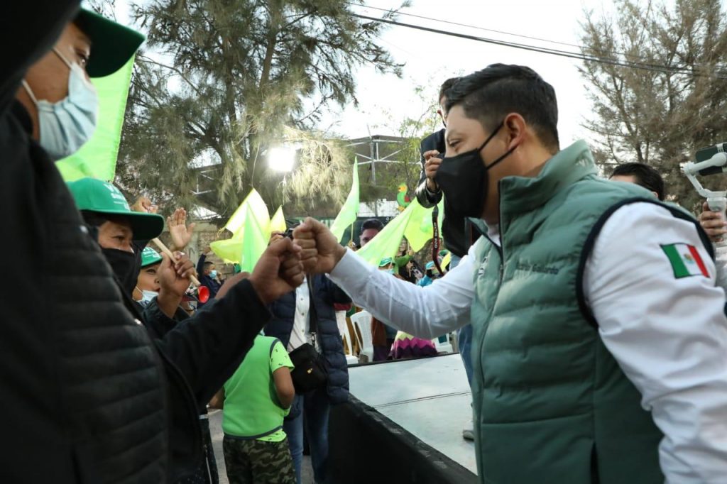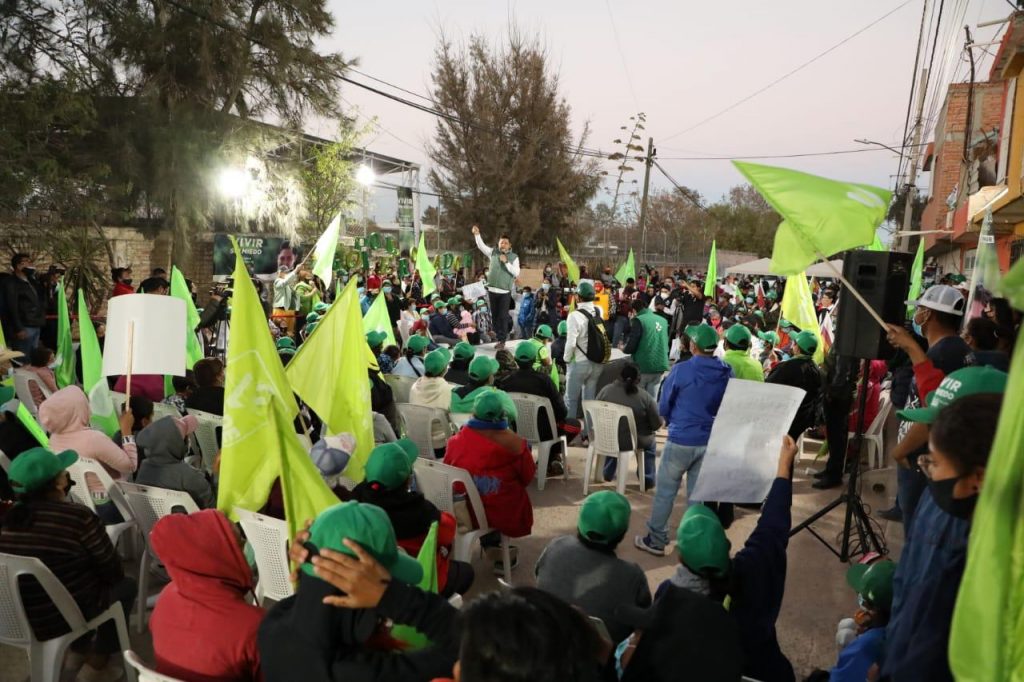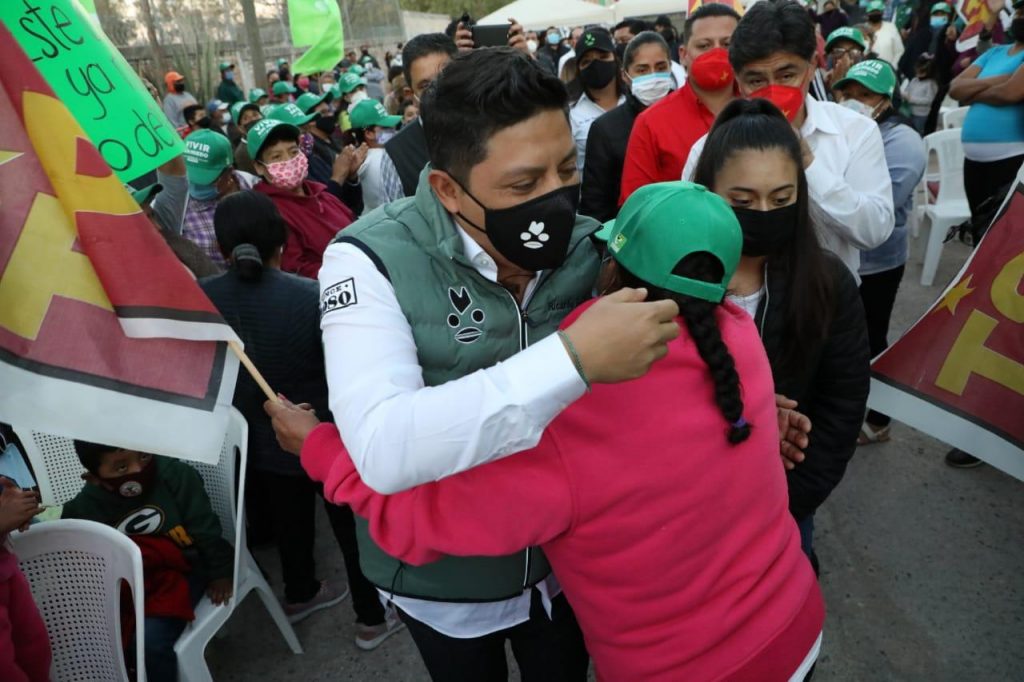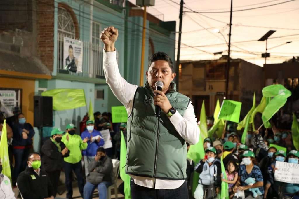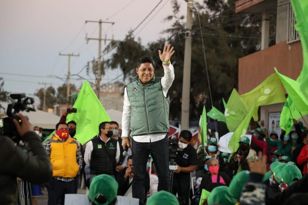 Entre las banderas Rojiverdes del Partido Verde Ecologista de México (PVEM) y del Partido del Trabajo (PT) y con cientos de carteles con muestras de afecto, “El Pollo” Gallardo dijo que erradicará el burocratismo de los institutos antes citados, así como de la secretaría de Cultura, para que de esta manera amplíen sus servicios a las y los jóvenes de todo el Estado, pues actualmente sus servicios son excluyentes y limitados.