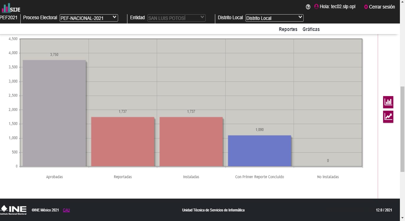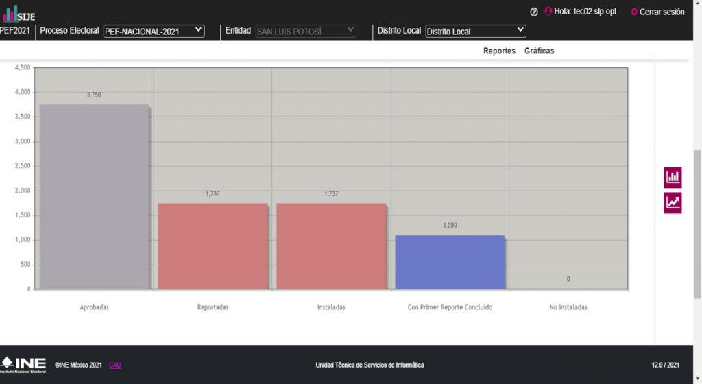 Durante la Sesión Permanente de la Jornada Electoral 2021 la Secretaria Ejecutiva del Consejo Estatal Electoral y de Participación Ciudadana (CEEPAC) Silvia del Carmen Martínez Méndez rindió un informe con corte de las 10 hrs. de la instalación de las 3750 casillas aprobadas en el territorio potosino. Este informe según los datos arrojados por un instrumento de recopilación, transmisión, captura y procesamiento de datos durante la jornada electoral, denominado Sistema de Información sobre el desarrollo de la Jornada Electoral (SIJE) Perteneciente al Instituto Nacional Electoral.