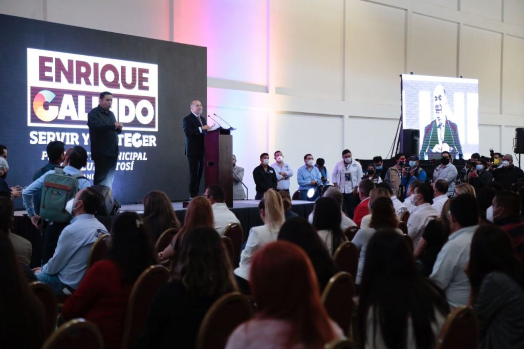 El abanderado a la alcaldía estuvo, además, acompañado de su familia: su esposa Estela Arriaga y sus hijos Enrique, Sebastián y Natalia Galindo Arriaga. Señaló que hoy lo primero, lo único y lo más importante es la Ciudad, primero San Luis Potosí y después todo lo demás, sé estar listo para servir y proteger a los y las potosinas, “sabemos qué le hace falta a la ciudad, qué anhela, qué quiere y cómo vamos a responder desde el primer día de gobierno a esta urgente exigencia de la Capital de contar con un Futuro Seguro para todos y todas».