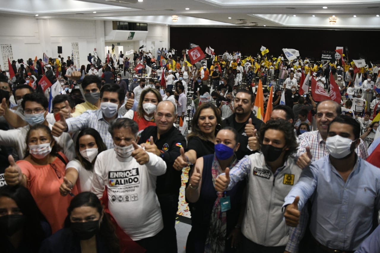 Más de mil militantes pertenecientes a los cuatro partidos que conforman la coalición (PRI-PAN-PRD-PCP), se dieron cita la tarde del miércoles en un salón del hotel María Dolores con la convicción de refrendar su apoyo total al candidato de la coalición Sí por San Luis Potosí, Enrique Galindo Ceballos, quien aseguró, “aquí no somos acarreados, nosotros trabajamos día y noche, con cabeza y corazón”.