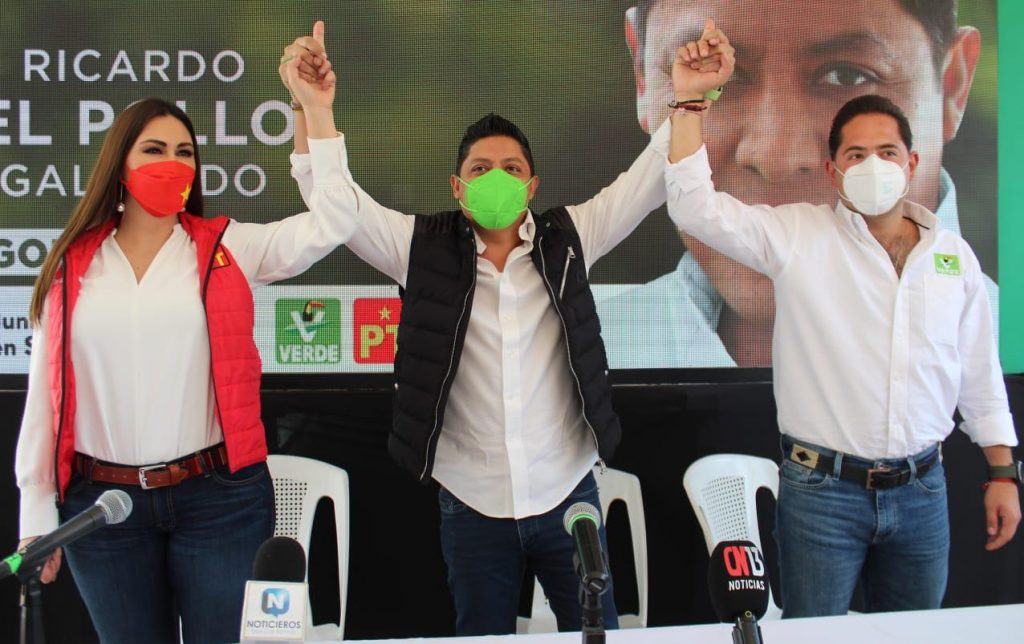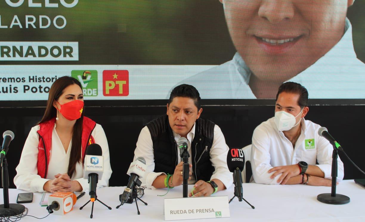 “La implementación de prácticas turbias vienen a ensucia esta campaña para tratar de que estos 20 puntos de ventaja que Ricardo Gallardo tiene, se reduzcan, pero queremos dejar un mensaje claro hoy Geovanna y yo aquí, para el Partido Verde y para el PT, es prioridad San Luis Potosí”.