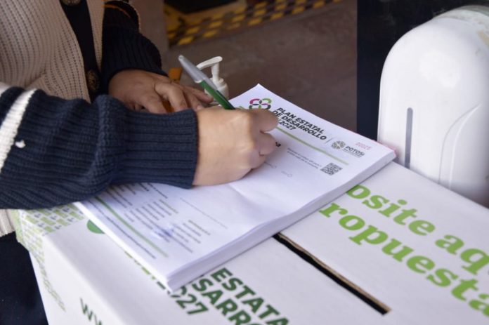 A través de consultas ciudadanas, foros sectoriales y regionales se llevan a cabo acciones para la construcción de un Plan Estatal de Desarrollo 2021 – 2027, que precise los objetivos a cumplirse en el trazo e implementación de las políticas públicas que darán una óptima distribución de los recursos públicos, porque esa ha sido la instrucción del Gobernador Ricardo Gallardo Cardona.