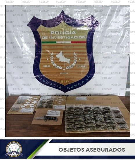 Las personas arrestadas, el vehículo, el arma blanca y los estupefacientes fueron presentados ante el agente del Ministerio Público de la Delegación Séptima de la FGESLP, el cual inició con una carpeta de investigación para que en las próximas horas se defina su situación jurídica.