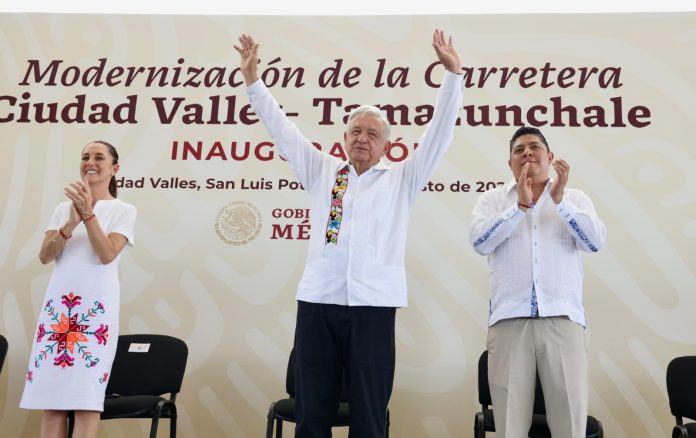 AMLO, CLAUDIA SHEINBAUM Y GALLARDO INAUGURAN SUPERCARRETERA VALLES-TAMAZUNCHALE.