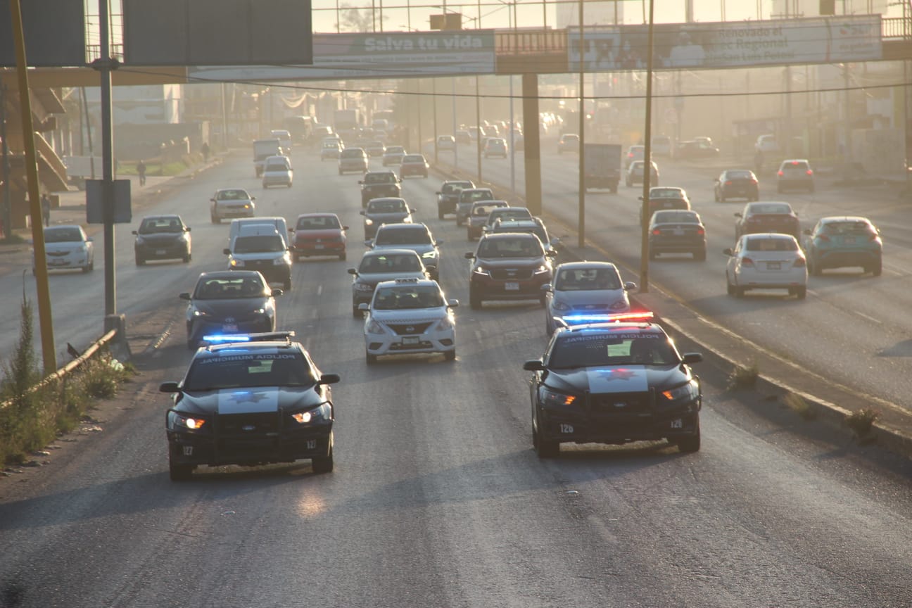 Los patrullajes se realizan de lunes a viernes de 6 a 8 de la mañana y por las tardes de 18:00 a 20:00 horas. Dos unidades con códigos visibles regulan la velocidad a 60 kilómetros por hora en avenidas primarias como Carretera a Rioverde y Carretera a Matehuala.
