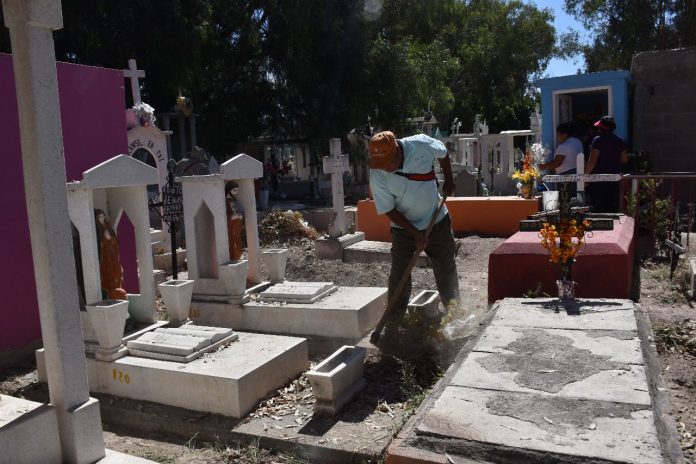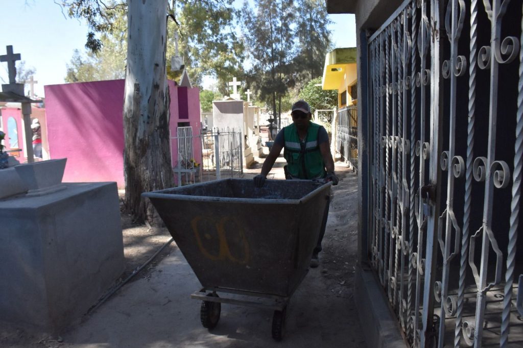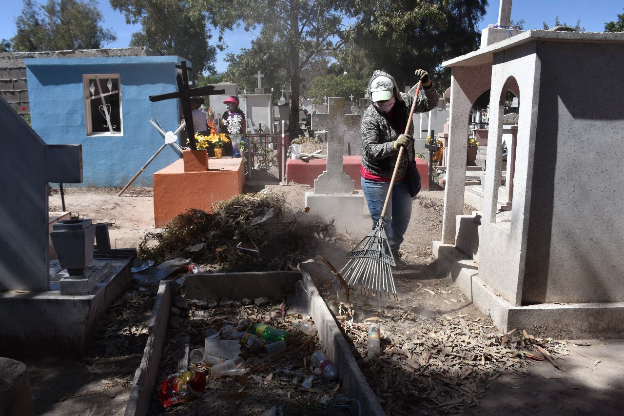 Puntualizó que de manera regular cada cementerio cuenta con su respectiva plantilla de personal, pero debido al fortalecimiento de las acciones de la Administración encabezada por Leonor Noyola, se intensificó la limpieza, barrido, deshierbe y retiro de maleza para continuar con espacios limpios y dignos para la visita de los familiares a sus seres queridos.