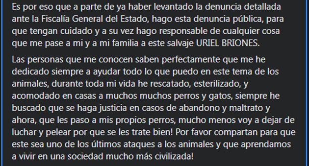 “Ya se realizó la denuncia correspondiente en la fiscalía (…) ayúdenme por favor a difundir esta información(…)” , declaró el dueño del perrito.