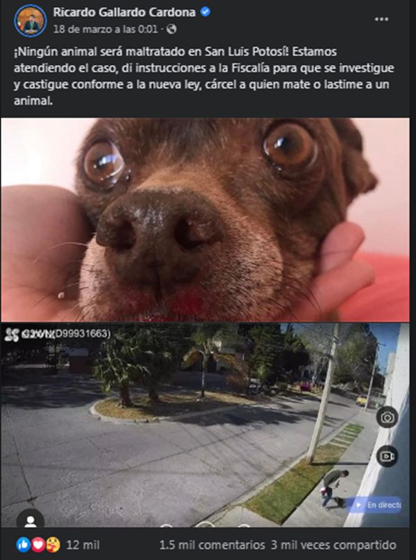 Este caso se viralizó tanto que llegó a los oídos del famoso activista @Arturo Islas Allende defensor Y protector de la vida animal y fauna, quien movilizó la denuncia dirigida hacia @Ricardo Gallardo Cardona, donde pedía que abarcaran el casó como debería de responder el gobierno de dicho partido…