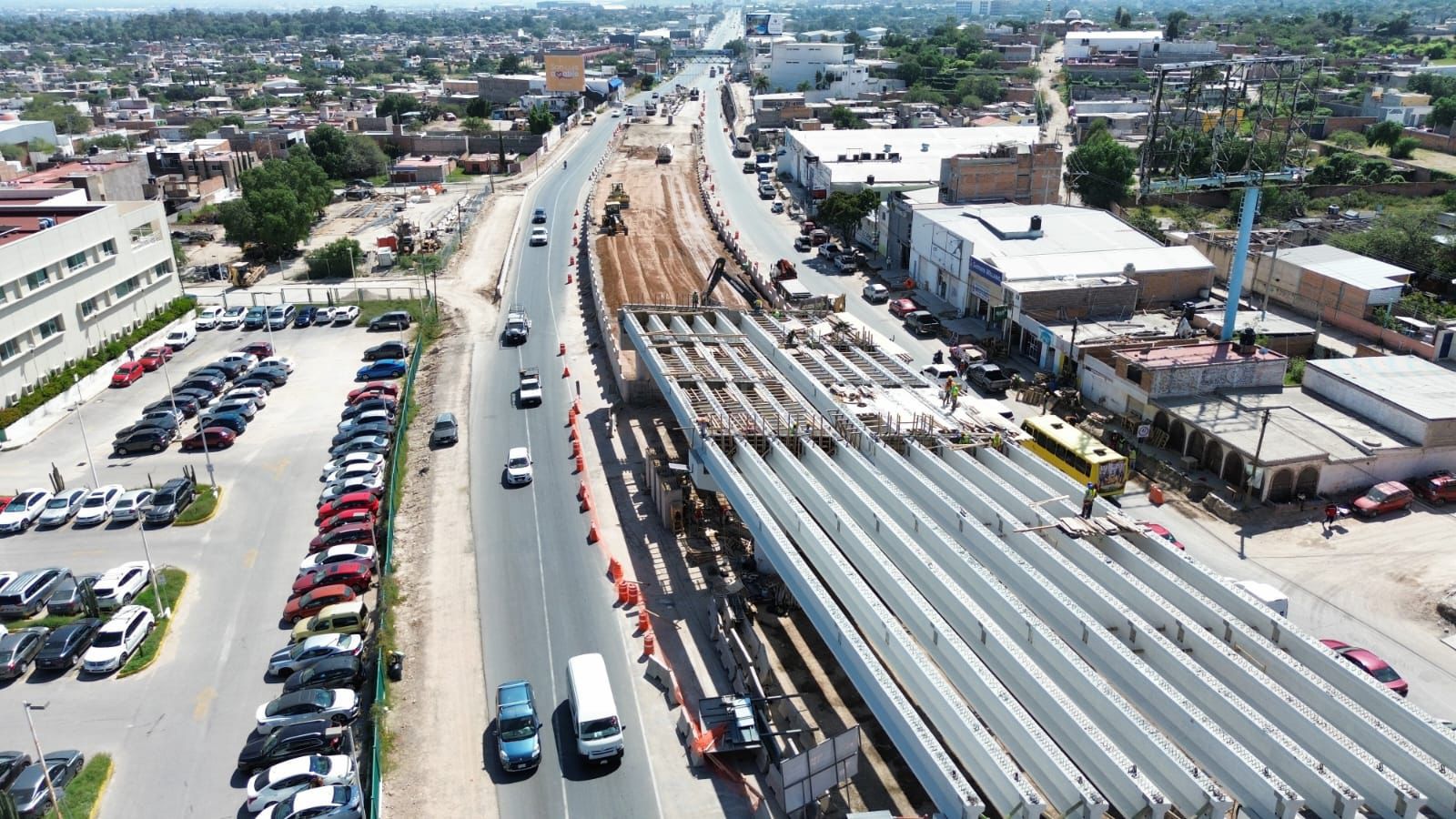 La Secretaría de Desarrollo Urbano, Vivienda y Obras Públicas (Seduvop), reporta un avance superior al 50 por ciento en la construcción del nuevo puente vehicular en Circuito Potosí y prolongación Coronel Romero, obra que brindará más apoyo en movilidad a más de 200 mil usuarios y usuarias.