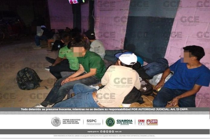 Rioverde, S.L.P.- Como parte de las acciones operativas establecidas dentro del Plan Integral de Seguridad que implementa la Guardia Civil Estatal, se informa el auxilio y rescate brindado a 46 personas en situación migratoria que estaban resguardadas en una bodega en el municipio de Rioverde; hay dos personas detenidas por la probable comisión del delito de tráfico de personas.