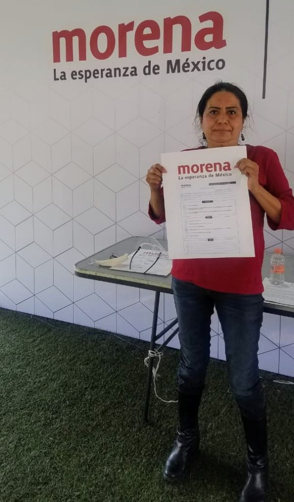 Como fundadora de Morena ha recorrido el Estado dando asesorías de formación política y siendo representante general en varias elecciones. Ya había sido precandidata en anteriores elecciones y ahora compite por una curul federal también, la del VI Distrito.