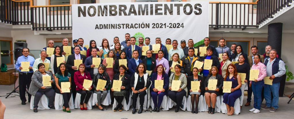 Los nombramientos son los siguientes: Secretaria General, Yoloxóchitl Díaz López; Tesorero Municipal, José Guadalupe Pérez Zúñiga; Secretaria Técnica, María Rosa Maldonado Castro; Dirección General de Seguridad Pública Municipal, Jorge Ramírez Leyva; Dirección de Fuerzas Municipales, Yeura Margarita Leura Granja; Dirección de Tránsito y Policía Vial, Mauricio Ordaz Flores; UAVI e Instituto de la Mujer, Verónica Miranda Nolasco; Oficialía de Partes, Norma Angélica Delgado Martínez; Relaciones Exteriores, María del Socorro Pérez Díaz; Coordinación de Bibliotecas Municipal, María Alicia Martínez Rodríguez; Cronista Municipal, Amado Juan Sánchez Cabrera; Unidad de Información, Uriel Iván Rodríguez Cardona; Dirección Jurídica, Elizabeth Hernández Rodríguez; Protección Civil, Martín Bravo Galicia; Dirección de Cultura Municipal, Roberto Mateo Posadas Martínez; Reclutamiento, Carolina González Rodríguez; Cultura San Francisco, María Antonia Castro Castañeda; Promoción Ciudadana, Laura Patricia Flores Esquivel; Participación Ciudadana, María de los Ángeles Pérez Sánchez; Respuesta Ciudadana y área operativa, Claudia Teresa Salas Rodríguez; Dirección de Infraestructura, Benjamín Pérez Álvarez; Dirección de Deportes, Juan Carlos Torres Silva; Instituto Municipal de la Juventud, Gerardo Sosa de Torres; Fomento Agropecuario, Antonio Castro Tristán; DIF e INAPAM, María del Pilar Cardona Reyna; INMUVISO, Diana Anahí Rosas Rodríguez; Contraloría Municipal, Mayra Alejandra González González; Eventos Especiales, José Guadalupe Sierra Arriaga; Oficialía Mayor, Alejandro Serrano Cortés ; Control Vehicular, Enrique Padrón Sánchez; Patrimonio Municipal, Edson Jesús Gámez Macías; Servicio Médico, Rafael Pérez Vázquez; Compras, María de Lourdes Escalante Vega; Enlace con PROSPERA, Zeferina Loredo Morales; Informática, Idalia Alejandra Guadalupe Sierra Gallegos; Desarrollo Urbano, Gabino Manzo Castrejón; Dirección de Catastro, Mayela Montserrat Martínez Martínez; Giros Mercantiles, Javier Rodríguez Contreras; Educación y Acción Cívica, José Juan Castro Castillo; Servicios Municipales, Conrado Pérez; Fomento Económico, Félix Gerardo Herrera Ortega; Dirección de Turismo, Aurora Mancilla Castro; Dirección de Ecología, Dolores Herminia Juárez Herrera; Parques y Jardines, Juan Miranda Martínez; Panteón Municipal I, Néstor Arturo Castillo Ruiz; Panteón Municipal II, María Rita Herrera Loredo; Alumbrado Público, Ignacio Morales Martínez; Rastro Municipal, Federico Rodríguez de Lira; Aseo Público, José Martín Guzmán Tovar; Capillas Funerarias, Rodrigo Lugo Delgado; Servicios Generales, Josefina Mendoza Sándate y Junta de Mejoras, Eduardo Salas Ramírez.