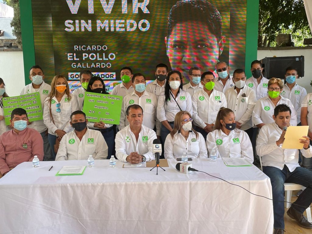 Agregó que líderes y exlíderes sindicales de la sección 52, en complicidad con autoridades educativas del gobierno del Estado también publican boletines y manifiestan un «voto corporativo» a favor del candidato oficial, y amenazando a las lo compañeros de dicha sección para que no voten por los candidatos del Partido Verde Ecologista de México, cometiendo un delito electoral.