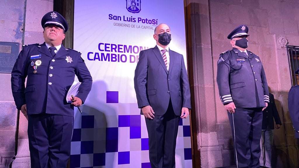 SLP.- El Presidente Municipal de San Luis Potosí, Enrique Galindo Ceballos, encabezó el acto protocolario de cambio de mandos de la Dirección General de Seguridad Pública Municipal (DGSPM), actividad que marca la transición hacia un nuevo modelo de seguridad pública en la capital potosina.