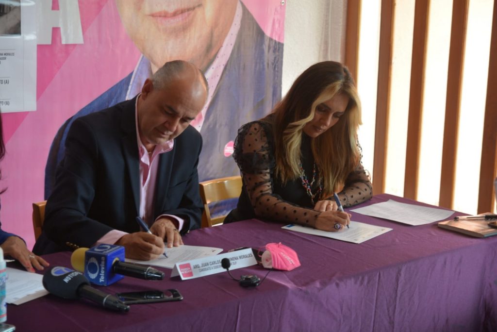 El candidato a gobernador de SLP Juan Carlos Machinena Morales, acompañado de candidatas y candidatos a diputaciones locales, federales y alcaldías, firmaron con la Fundación Karla de la Cuesta “Alas Abiertas” una carta compromiso contra la Trata de Personas en el estado, con la presencia de su presidenta Karla de la Cuesta y acompañada de la maestra Nallely Gutiérrez presidenta ejecutiva de AMMAC.