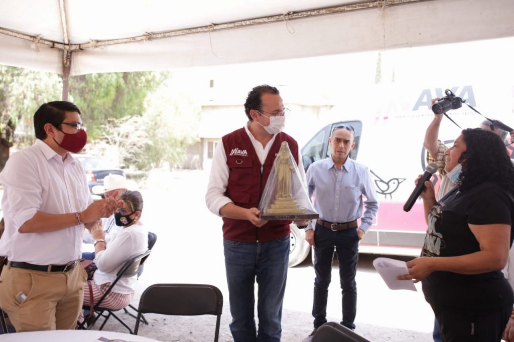 Después de entregarle en escultura el símbolo de esta demarcación, La Aguadora, el aspirante a la Presidencia Municipal detalló que Pozos está conformada por áreas rurales y áreas urbanas densamente pobladas, y cada una de ellas requiere de una atención especial con servicios más eficientes y proyectos de alto impacto social «y al iniciar el próximo trienio, seguirán porque nosotros sí conocemos la ciudad».