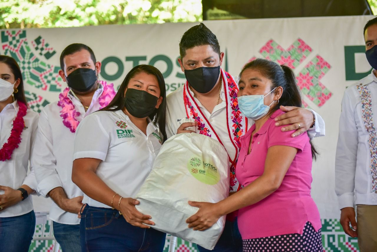 Asimismo, y con la finalidad de que las y los habitantes de Tancanhuitz tengan acceso a un sustento digno que ayude a mejorar su calidad de vida, inició la entrega de Becas Alimentarias en este municipio, uno de los que registra índices de mayor rezago social de San Luis Potosí, donde el 30 por ciento de la población tiene problemas para acceder a su alimentación diaria.