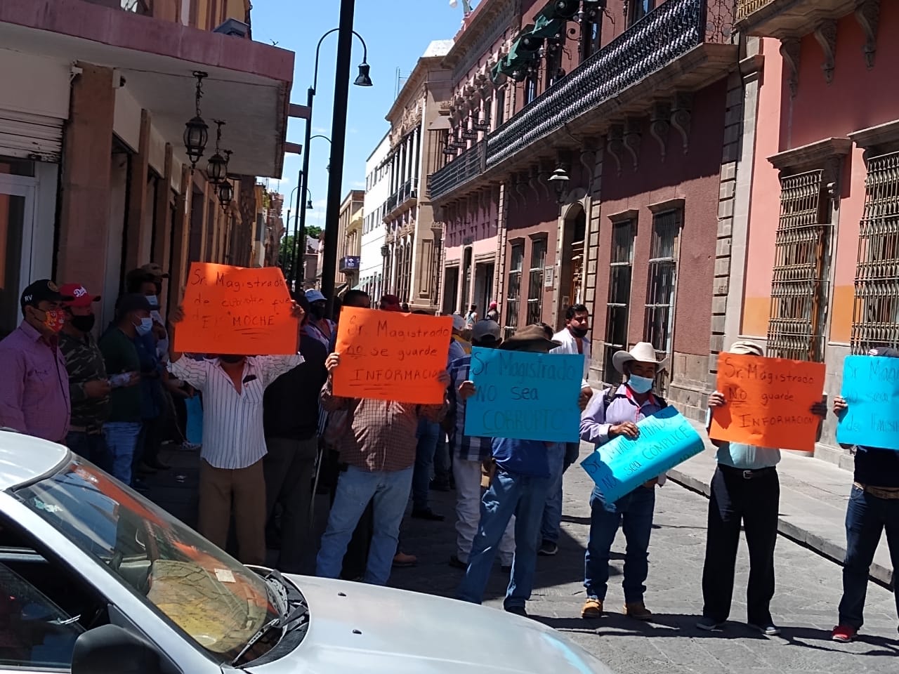 CIERRE DE CALLES HOY EN EL CENTRO HISTÓRICO A CAUSA DE MANIFESTACIÓN A LAS AFUERAS DE TRIBUNAL AGRARIOS, EN DEMANDA DE SOLUCIONES AL PROBLEMA AGRARIO DE LA.PILA. PIDEN QUE MAGISTRADOS DE DICHO ÓRGANO NO GUARDEN INFORMACIÓN Y NO SEAN CÓMPLICES DE LA SITUACIÓN EN AUDIENCIA CELEBRADA HOY EN EL RECINTO OFICIAL.