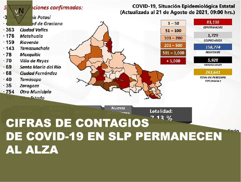 CIFRAS DE CONTAGIOS DE COVID-19 EN SLP PERMANECEN AL ALZA
