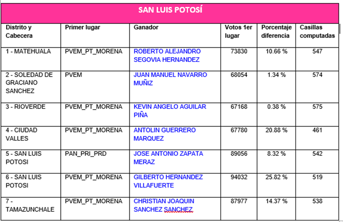 CONCLUYE INE SLP EL CÓMPUTO EN SUS SIETE DISTRITOS ELECTORALES FEDERALES