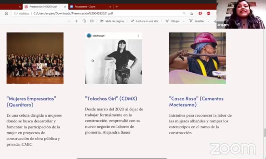 Como parte de las Jornadas Universitarias en torno al 8M, “Abriendo Camino”, organizadas por la Defensoría de los Derechos Universitarios de la Universidad Autónoma de San Luis Potosí, la arquitecta América Jadhay Sánchez Hernández ofreció la charla “Participación productiva de las mujeres en el sector de la construcción”.