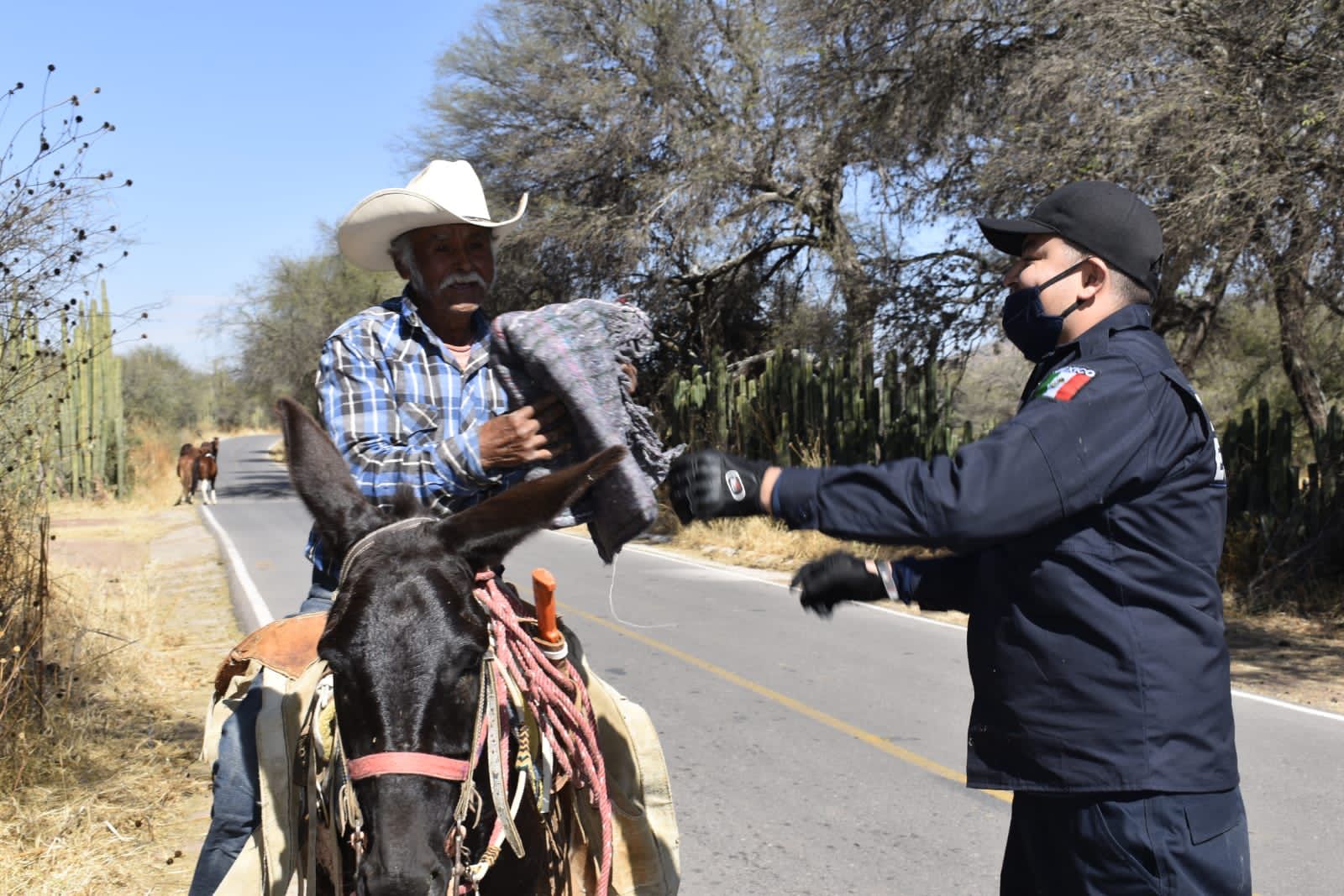 SAN LUIS POTOSÍ, SLP.- Derivado de las acciones de proximidad social y en el marco del Día de Reyes, agentes de la Policía Estatal recorrieron diversas comunidades de los Municipios de Santa María del Río y Villa de Reyes donde entregaron cobijas y juguetes a las familias que habitan en dichas zonas.