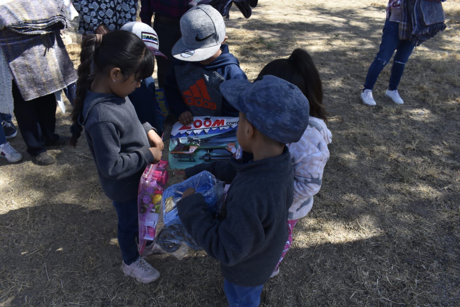 En el lugar también se repartió ropa abrigadora para los pequeños y sus familias, quienes aprovecharon para abrir sus presentes y jugar con sus pelotas, carritos o muñecas.