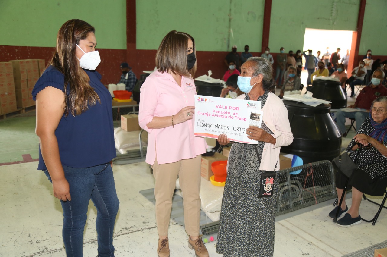 Como parte de la estrategia integral Por una Alimentación Sana, Variada y Suficiente, continúa la entrega de paquetes para instalar granjas avícolas de traspatio. Ahora, la presidenta de la Junta Directiva de la Junta Directiva del Sistema Estatal para el Desarrollo Integral de la Familia (DIF), Lorena Valle Rodríguez, visitó Villa Hidalgo para realizar la entrega de estos proyectos productivos, bicicletas y apoyos alimentarios.