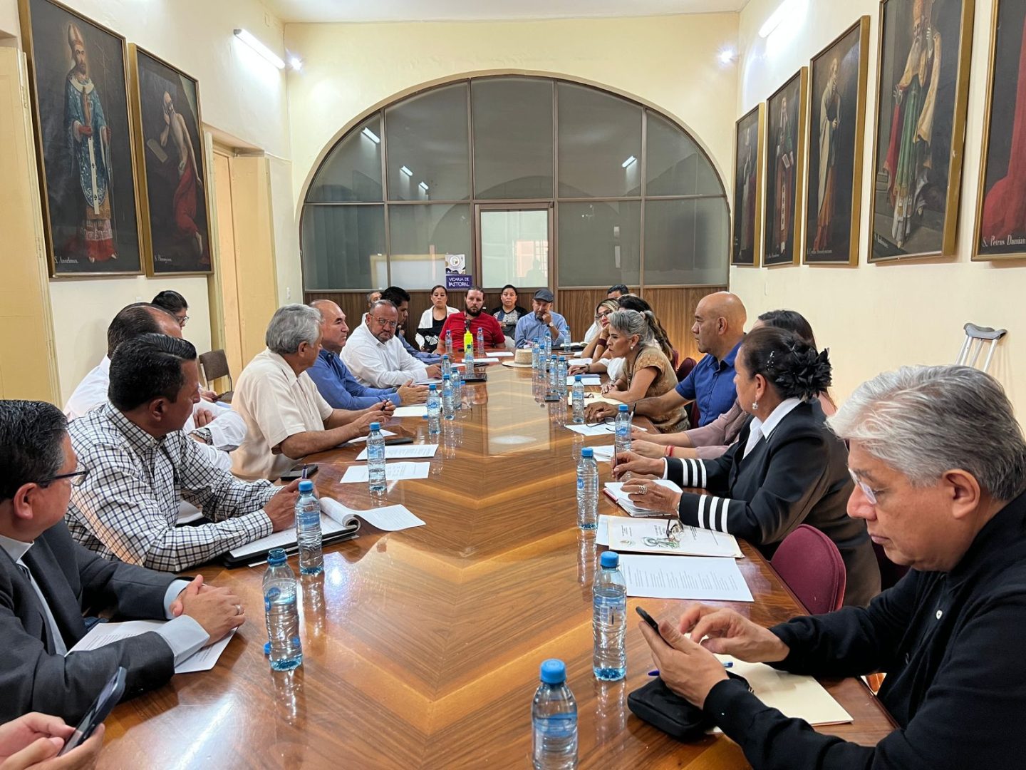 La reunión se llevó a cabo en la sede del arzobispado. Por parte de los comerciantes estuvieron presentes la Arquitecta María Carmen Ramírez Reyna, Eustolio López, Alicia Rivera y Felipe Vázquez. Por el Colegio de San Luis participó David Madrigal.