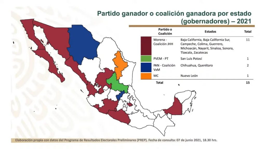 El mandatario potosino indicó que, de acuerdo a las cifras del Programa de Resultados Electorales Preliminares (PREP), del Consejo Estatal Electoral y de Participación Ciudadana (CEEPAC) que cerró al 7 de junio del presente año, se aprecian los siguientes resultados: