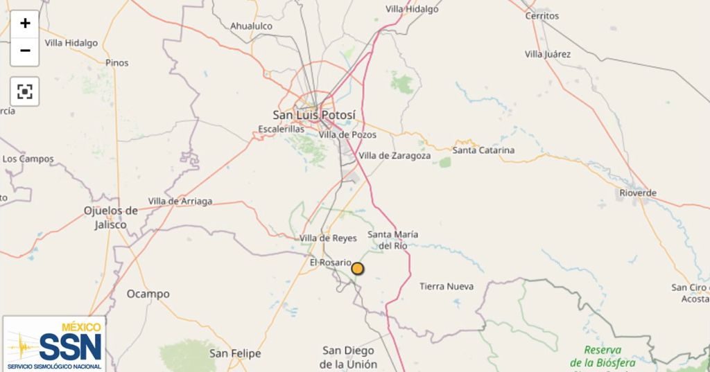 La Coordinación Estatal de Protección Civil (CEPC) informó que esta noche se presentó un sismo a 15 kms al suroeste de Santa María del Río, SLP.