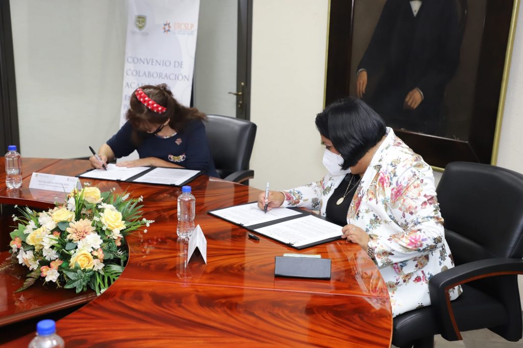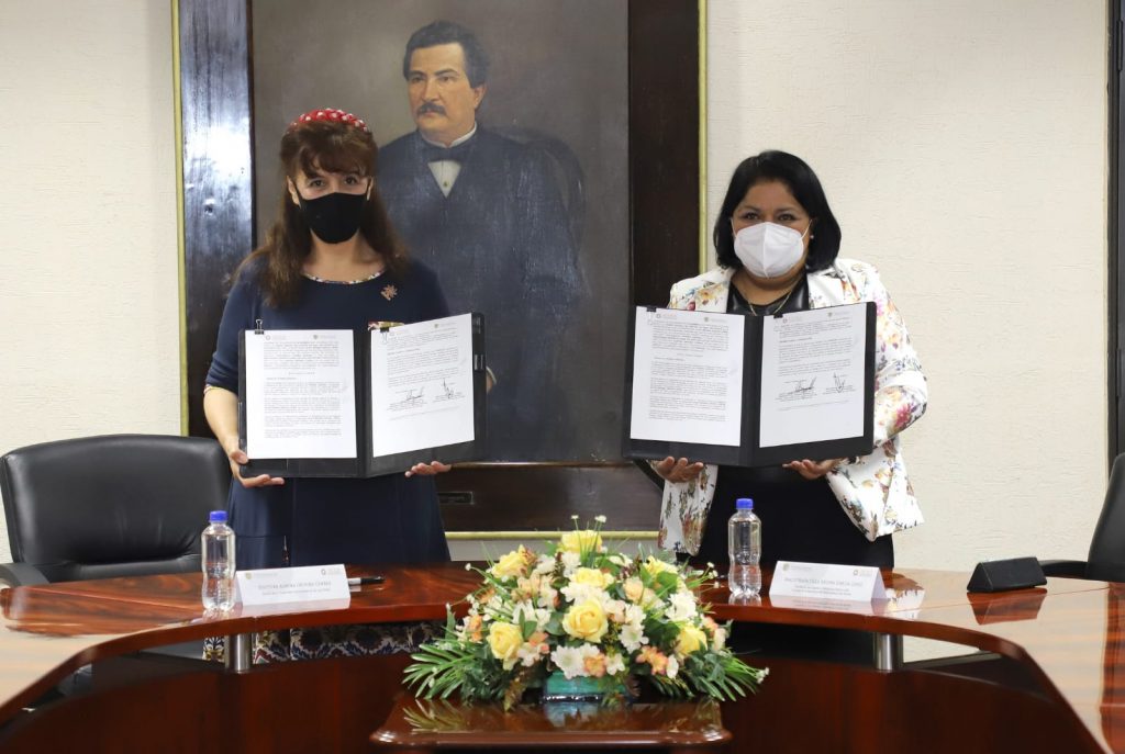 La difusión y extensión de la cultura jurídica, la investigación y docencia, son algunos de los objetivos del convenio de colaboración académica firmado por la Magistrada Olga Regina García López, Presidenta del Supremo Tribunal de Justicia y del Consejo de la Judicatura y la Doctora Aurora Orduña Correa, Rectora de la Universidad Intercultural de San Luis Potosí (UICSLP).
