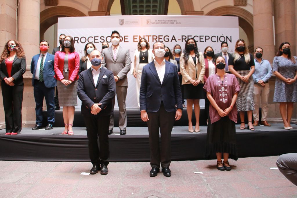 Con la presentación de los equipos de transición, la mañana de este lunes se llevó a cabo el acto protocolario que dio inicio al proceso de entrega-recepción del Ayuntamiento de San Luis Potosí, mismo que concluirá el próximo primero de octubre con la toma de posesión de Enrique Galindo Ceballos como alcalde de la capital para el periodo 2021-2024.