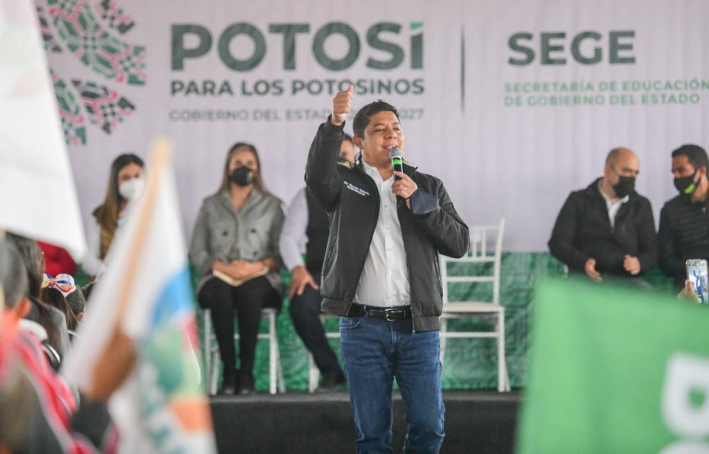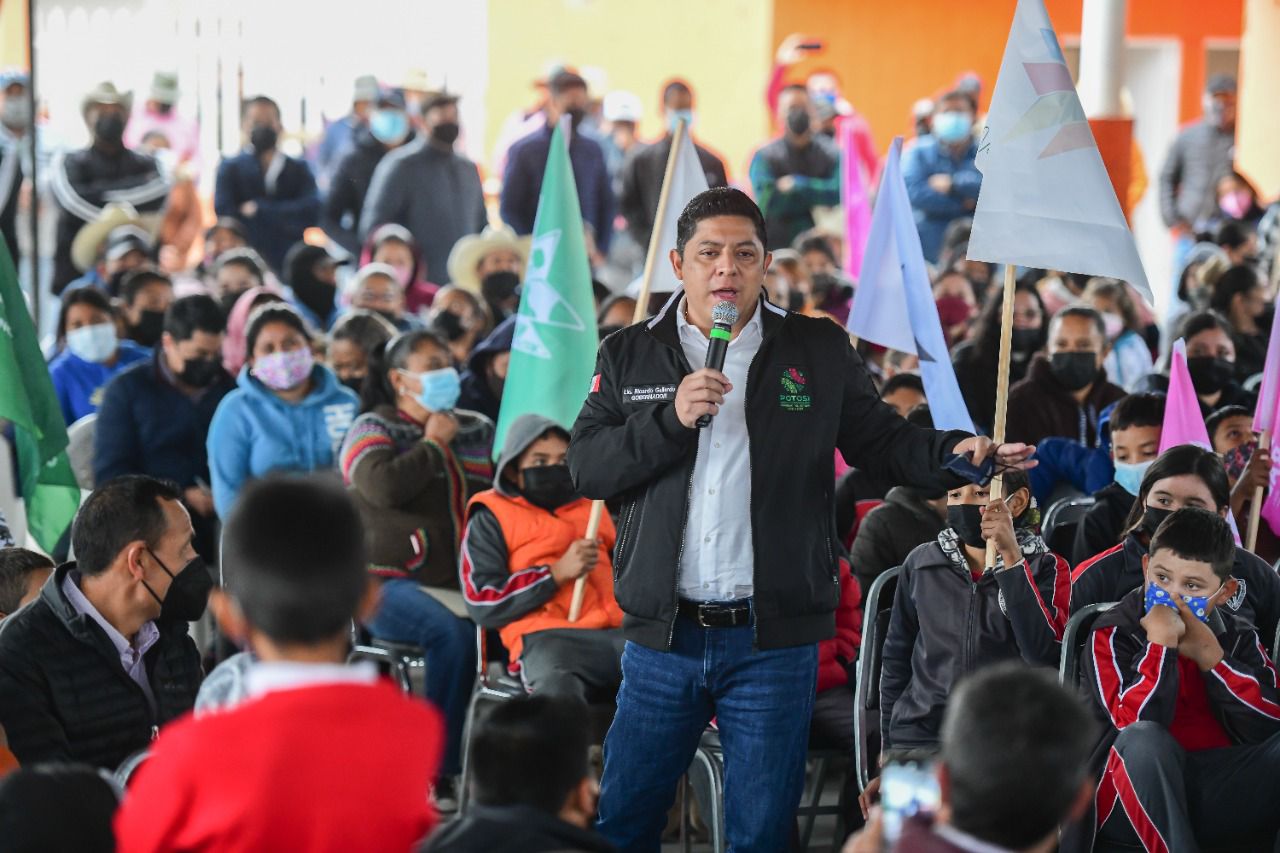 En la plaza Principal, ante centenares de cedralenses, el Gobernador de las y los potosinos realizó la entrega de las Becas Alimentarias, donde manifestó que su administración quiere rescatar a San Luis Potosí de la pobreza en que la sumieron los Gobiernos corruptos que sólo lo sangraron y no lo dejaron progresar y pidió el apoyo para el alcalde Howard Francisco Aguilar Vergara, quien afirmó que está trabajando muy fuerte para sacar adelante a Cedral.