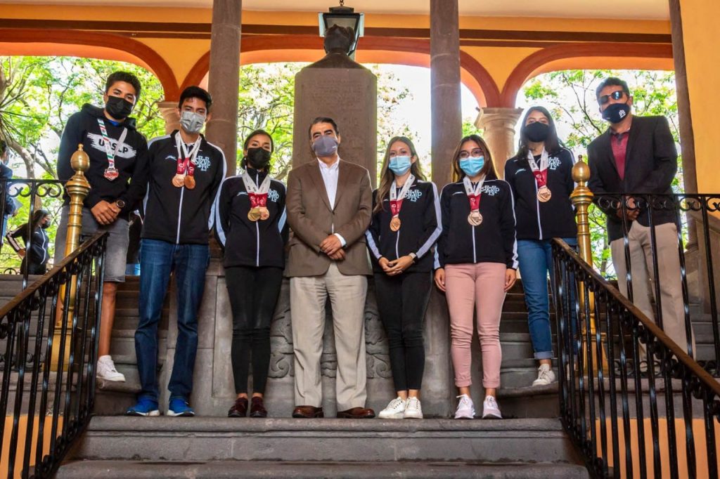 El rector de la Universidad Autónoma de San Luis Potosí, Dr. Alejandro Zermeño Guerra, recibió en el edificio central, a los jóvenes deportistas que representaron a la institución en el Campeonato Nacional Universitario de Atletismo 2021, efectuado en la Universidad Autónoma de Coahuila (UAdeC) en el marco de los Juegos Nacionales del Consejo Nacional del Deporte de la Educación A.C. (CONDDE).