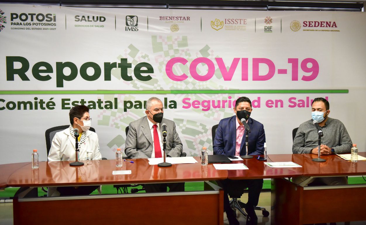 Acompañado por el titular de los Servicios de Salud, Daniel Acosta Díaz de León, la titular del IMSS, María Guadalupe del Rosario Garrido Rojano, y Gabino Morales Mendoza, delegado federal de los Programas Integrales del Bienestar; el titular del Ejecutivo explicó que debido al virus del COVID-19 la forma de vida cambió por completo, y se enfrentó el reto más grande que como humanidad hemos tenido en el último siglo, “nos arrebató familiares, amigos y vecinos, más de 6 mil 800 potosinas y potosinos por los que aún vivimos en luto”.