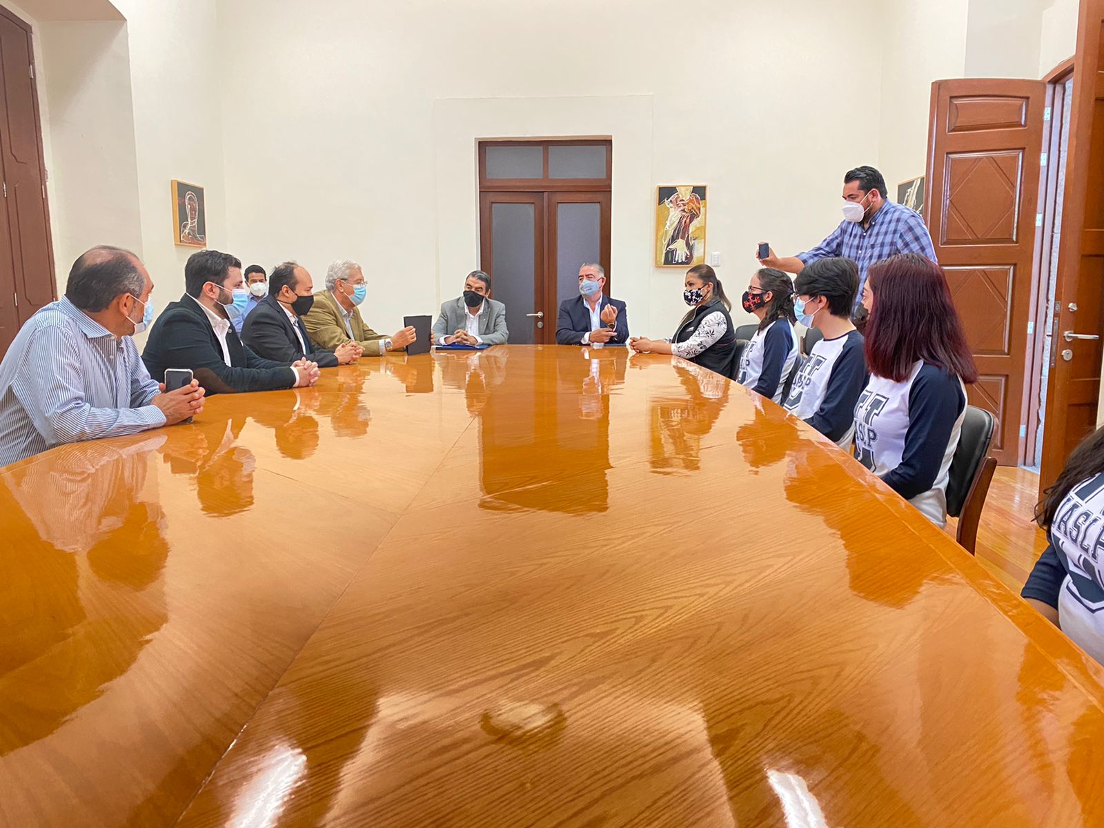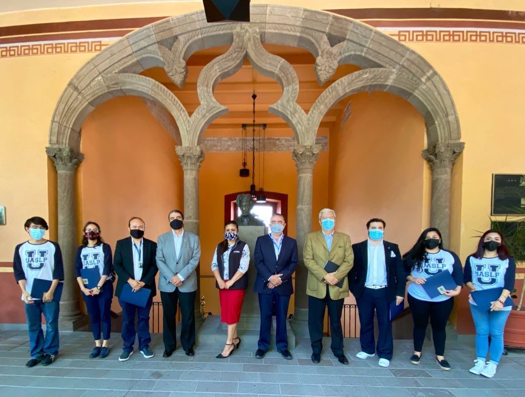 Estudios sobre Democracia y Procesos Electorales y jefe de la misión electoral así como alumnas y alumnos de la universidad hicieron entrega del Informe de la misión de observación electoral de la Universidad Autónoma de San Luis Potosí elecciones 2021 al Vocal Ejecutivo del Instituto Nacional Electoral (INE) en San Luis Potosí, Pablo Sergio Aispuro Cárdenas.