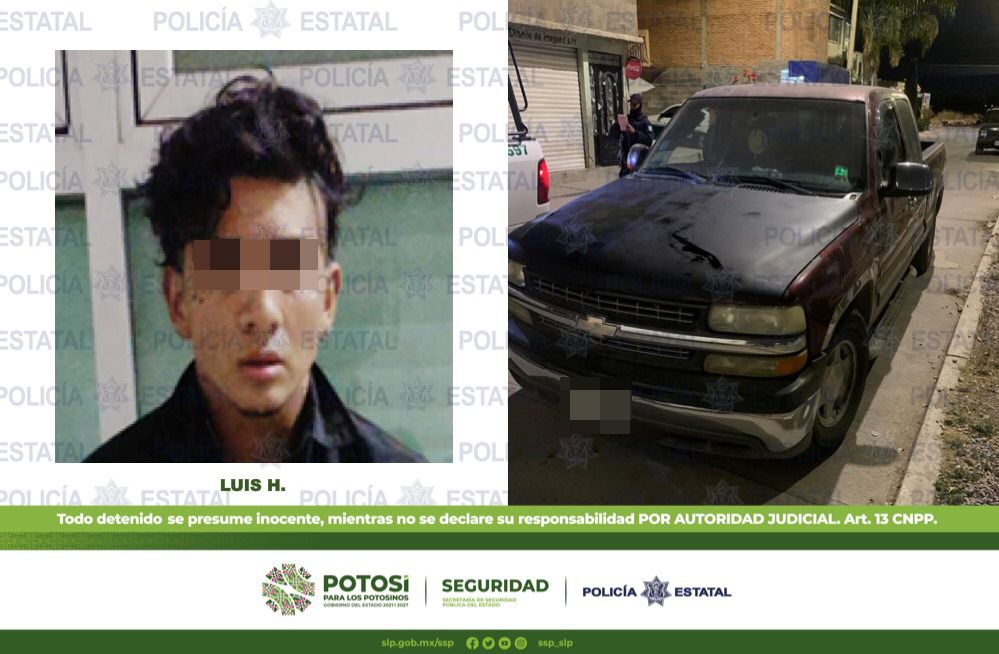 Por otra parte, en Calle Reparadoras, en la colonia Las Mercedes en la Delegación de Villa de Pozos, los agentes de seguridad detuvieron a Luis H., de 21 años de edad, por la presunta posesión de una camioneta marca Chevrolet, 2002, robada sin violencia el día 11 de enero de 2022.